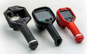 For over-moulding, generally a TPE thermoplastic rubber is used to co-mould onto a plastic material, usually ABS or PC, in a two-tool stage process, creating a stronger bond. This is used on many instrument cases where the customer wants to produce a case that has a durable feel and to offer further impact protection to the plastic shell.